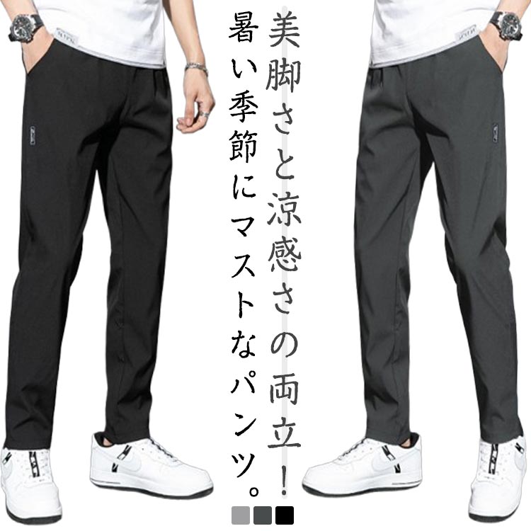 接触冷感 テーパードパンツ メンズ 夏 アイスシルクパンツ 春夏 細身 スウェットパンツ ウエストゴム ジョガーパンツ