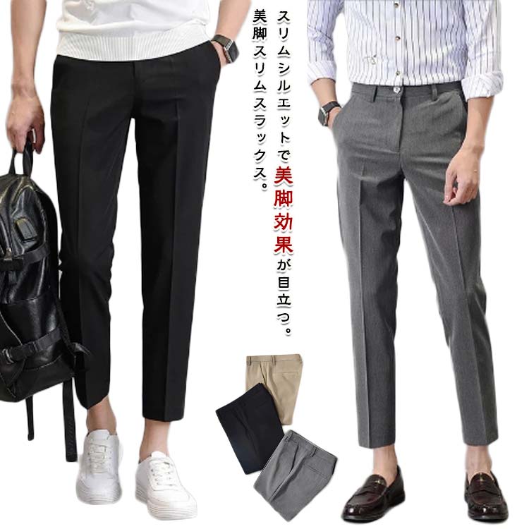 アンクルパンツ スリム スラックス メンズ ビジネス パンツ 九分丈 春夏秋 スーツパンツ 美脚 通勤 紳士 仕事着