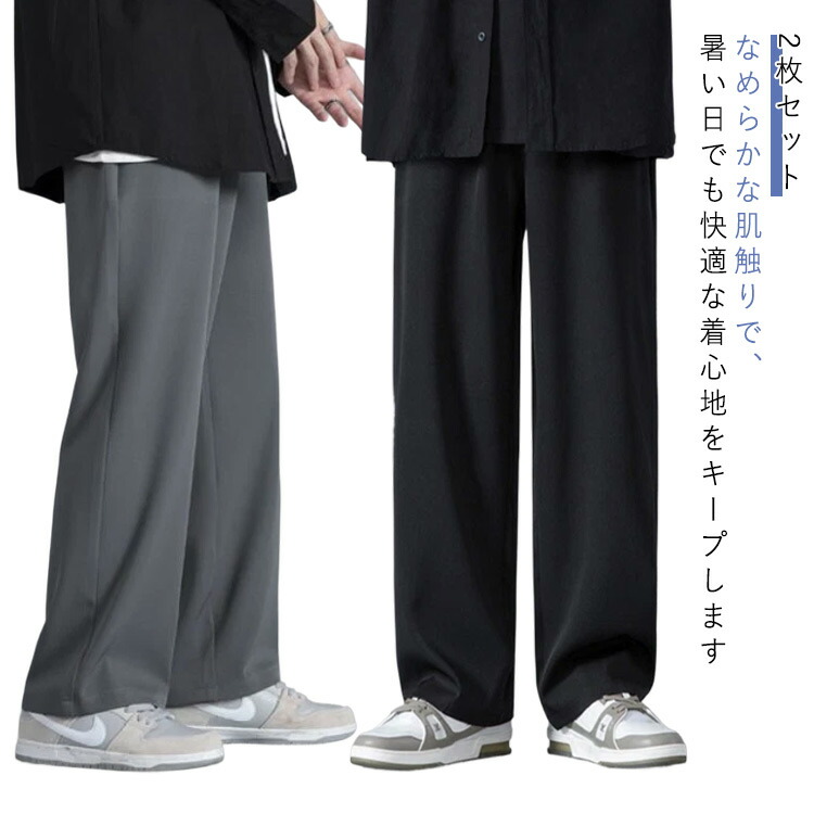 2枚セット ボトムス 薄手 パンツ 冷感パンツ アイスシルクパンツ ストレート 涼しい ロング丈 ズボン ゆったり ワイドパンツ 大きいサイズ カジュアル ロングパンツ スポーツ オフィス