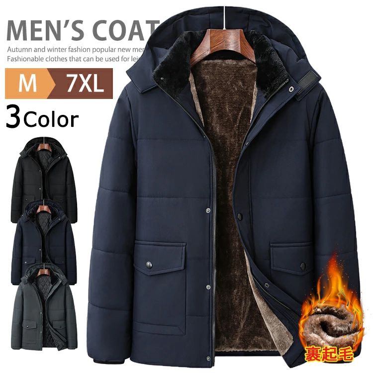 ポリエステル メンズ ダウンジャケット アウター ダウンコート 大きいサイズ 防寒 黒 大人 中綿 超ロング 綿入れ 前開き 防水 ハート ポケット インナーダウンジャケット 男性