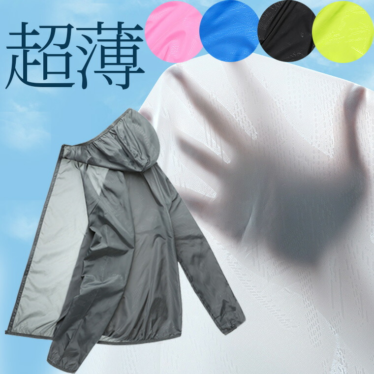 超薄手 男女兼用 ~4まで 収納ポーチ付 無地 ウィンドブレーカー 長袖で日差しや虫を防ぐ シンプル 通気性 防水 大きいサイズ