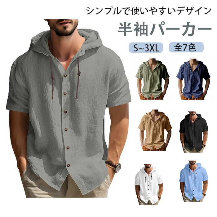 パーカー 半袖 メンズ 涼しい メンズ パーカー 綿麻 パーカー フード付き カット 夏服 ゆったり 薄手 20代 30代 40代