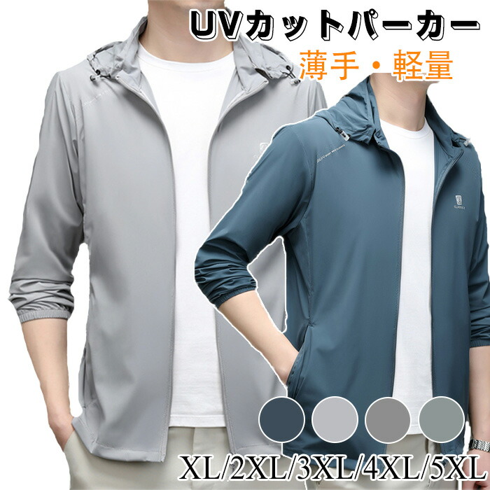 7XLサイズまで 脱いでも邪魔にならない 薄手パーカー UVパーカー ライトジャケット メンズ 日焼け止め UV対策 ジャケット パーカー ラッシュガード 薄手 軽量 速乾 冷房対策