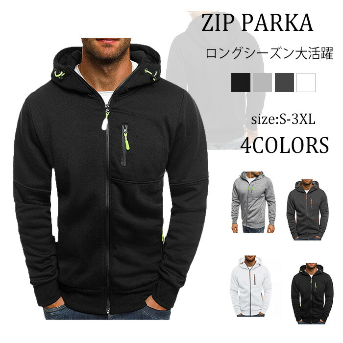 パーカー メンズ 大きいサイズ ジップパーカー ジップアップパーカー アウター 長袖 フード付き 前開き ジップアップ おしゃれ 無地 春 秋 スウェットパーカー 男性シャツ 軽い 柔 スポーツ
