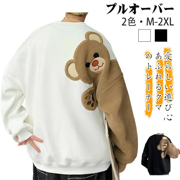 長袖くまトレーナー 裏起毛 プルオーバー オシャレ スエット コーデ トップス メンズ トレーナー メンズパーカー 面白いクマ柄 カップル ファション男女兼用 人気秋服