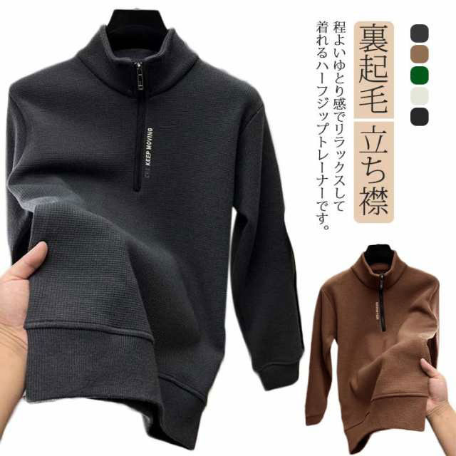 あったか ハーフジップ トレーナー 裏起毛 秋服 新作
