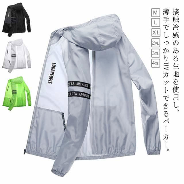 メンズ 涼しい薄手 ラッシュガード アウター 全4色 紫外線対策 フード付き 接触冷感 長袖 UVカット ひんやり 涼感 おしゃれ 夏用 吸汗速乾 日焼け防止 ジャケッ ジップアップパーカー