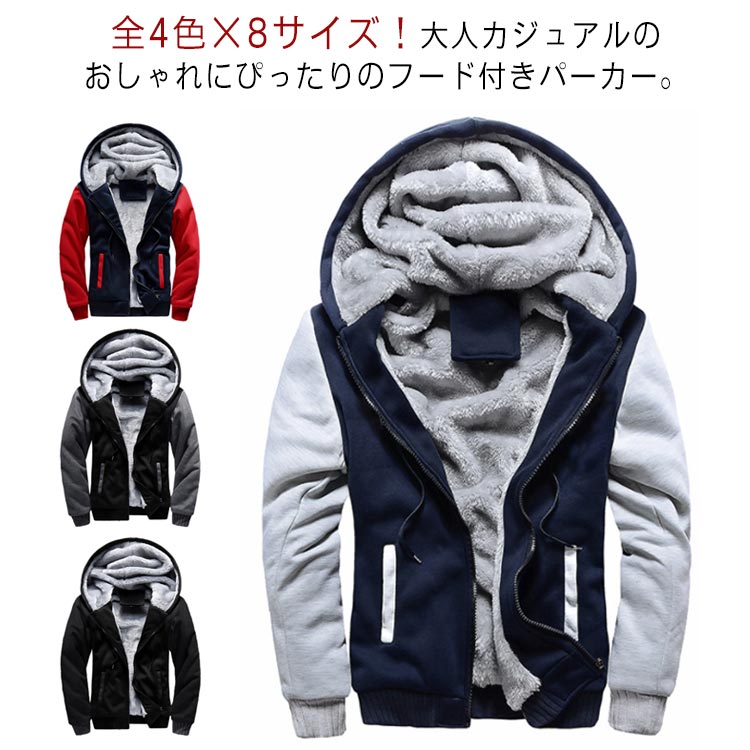 超暖 裏起毛 パーカー メンズ 裏毛 パーカー スウェット ジップパーカー 普段着 部屋着 裏ボア 配色 秋冬