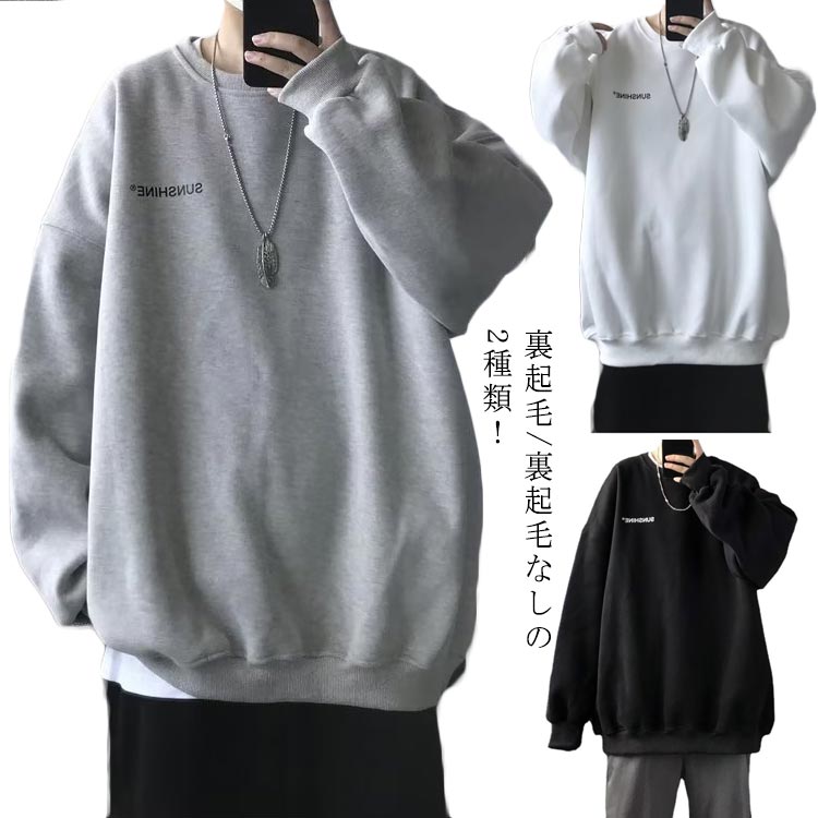 ビッグシルエット トレーナー メンズ 裏起毛 長袖 シャツ スウエット プルオーバー ラウンドネック