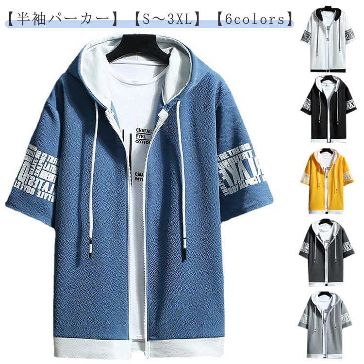 メンズ 半袖 メンズ 半袖ジップパーカー 春 夏 パーカー