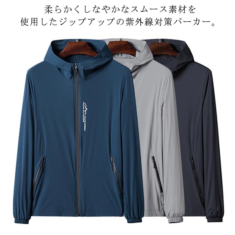 パーカー 釣り 涼しい 紫外線カット ジップアップ サマージャケット 薄手 紫外線対策 UVパーカー 長袖 日焼け対策 シンプル UVカット UPF50+ メンズ 冷房対策 大きいサイズ カ 吸水速乾