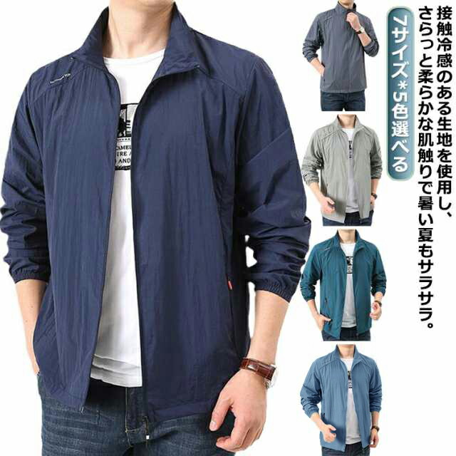 接触冷感 フードなし メンズ 夏用 薄手 立ち襟 長袖 紫外線対策 ラッシュパーカー コート 日焼け防止 ジャケット uvパーカー ひんやり 吸汗 パーカー 冷感 冷房対策 軽量 速乾