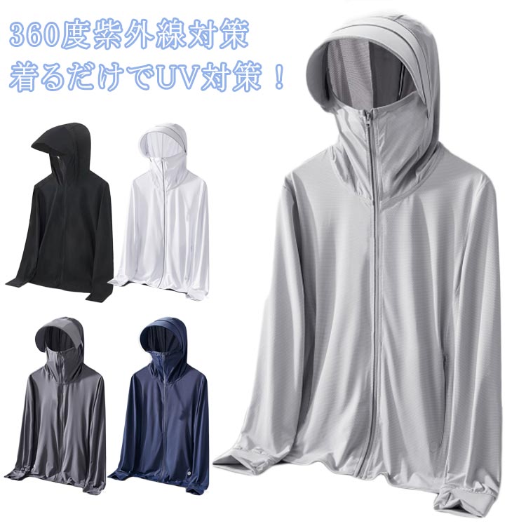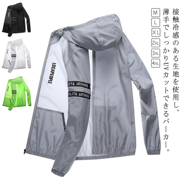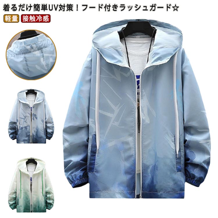 uvパーカー メンズ ラッシュガード 長袖 UVカット パーカー サマージャケット ジップアップ 薄手 軽量 コート フード付き 大きいサイズ 紫外線対策 涼しい ゆったり 接触冷感 冷房対策