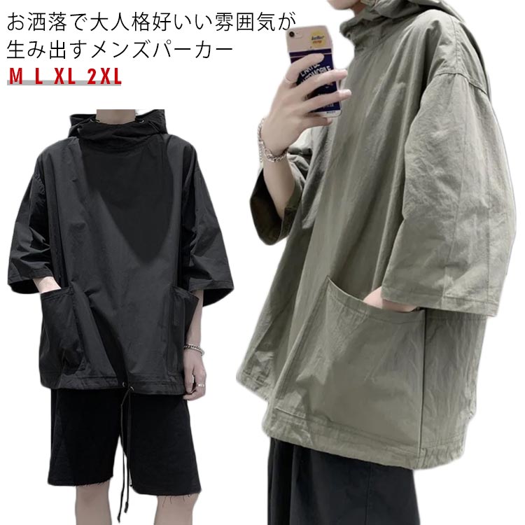 ビッグパーカー メンズ 半袖 プルオーバー 夏パーカー サマーパーカー おしゃれ 薄手 スポーツウェア ゆったり トップス シャツ