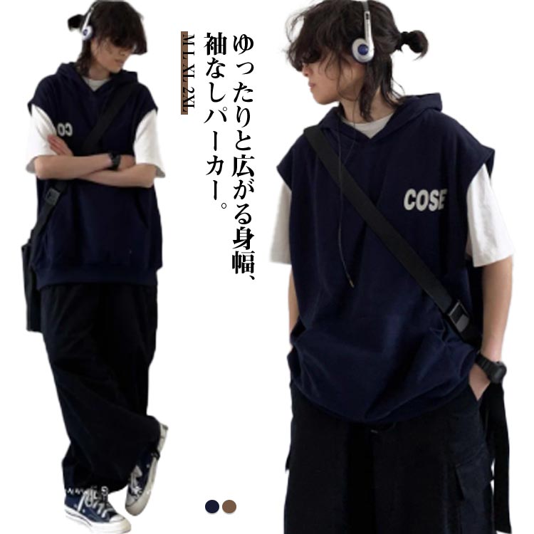 ノースリーブパーカー フード付き タンクトップ サマーパーカー ゆったり 薄手 サマーパーカー メンズ