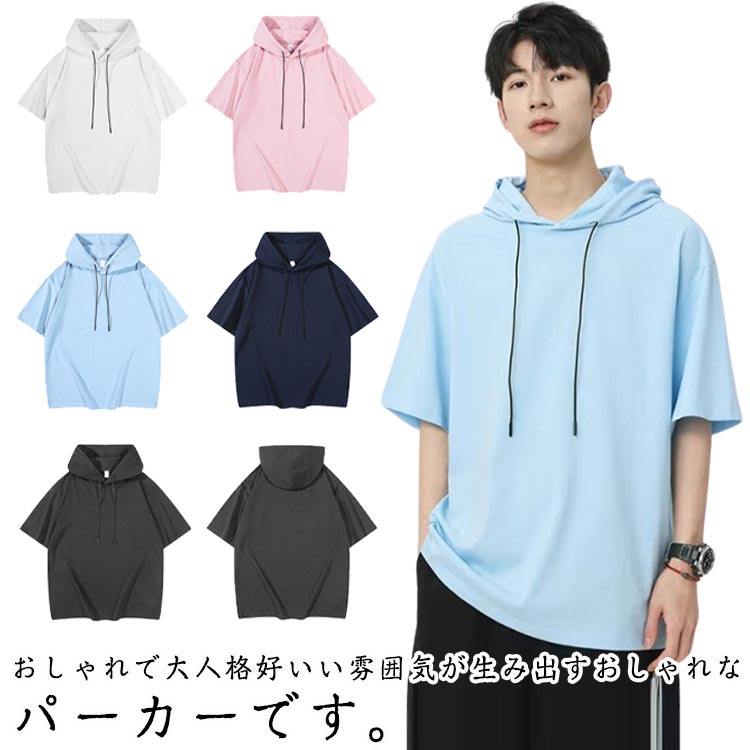 半袖 サマーパーカー 夏パーカー パーカー 薄手 スポーツウェア おしゃれ カジュアル プルオーバー フード付き ゆったり トップス tシャツ 半袖パーカー カットソー ルーム フーディー