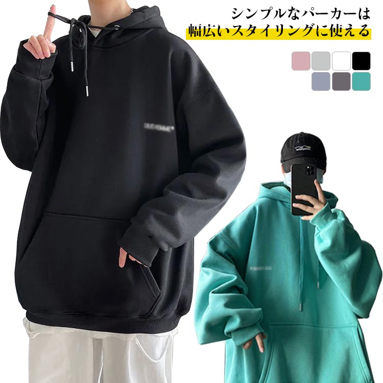 オーバーサイズ パーカー ビッグシルエット 長袖 メンズ ゆったり 春 秋 フード付きパーカー おしゃれ シンプル 英字ロゴ 大きいサイズ カジュアル プルオーバー メンズファッション ポケットあり