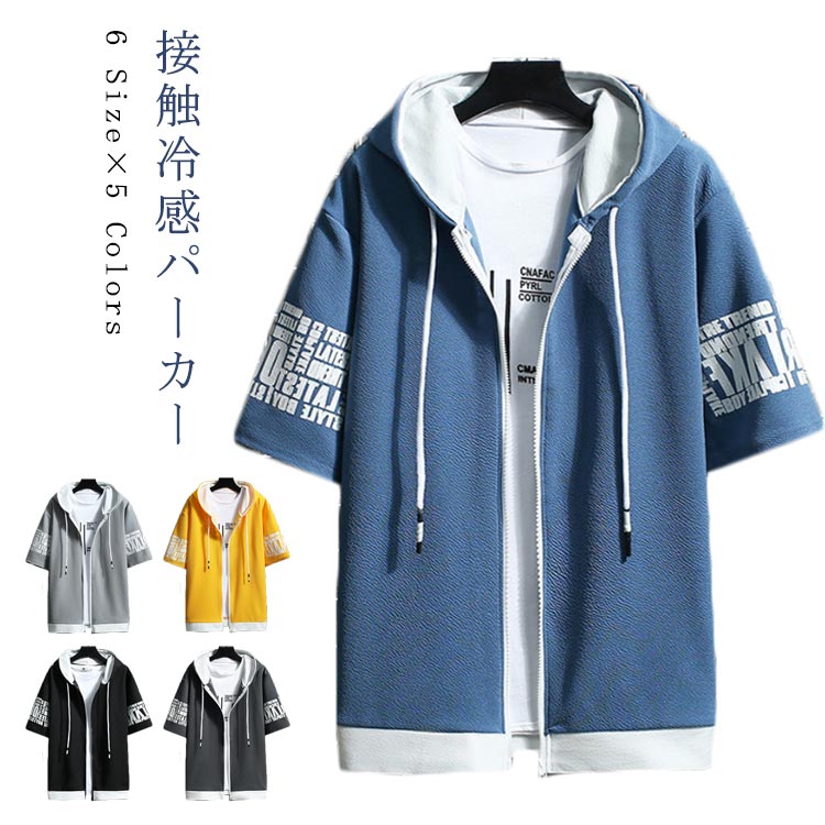 半袖パーカー メンズ 半袖 パーカー シャツ レイヤード 重ね着 対策 ストレッチ プリント スポーツ
