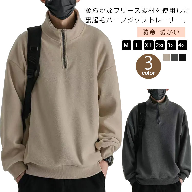 メンズ オシャレ フリース スウェット ハーフジップ トップス トレーナー スタンドカラー 裏起毛 ハイネック 防寒 暖かい カットソー ストリート系 プルオーバー アウトドア