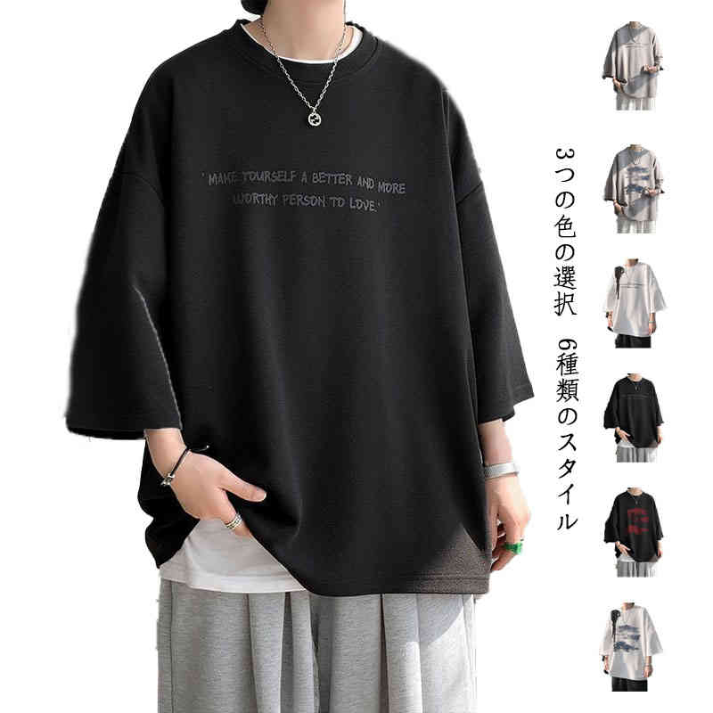 メンズ 7分袖 丸首 シャツ カットソー オーバーサイズ シャツ 夏トップス 大きいサイズ 夏 涼しい メンズシャツ 冷感 ひんやり