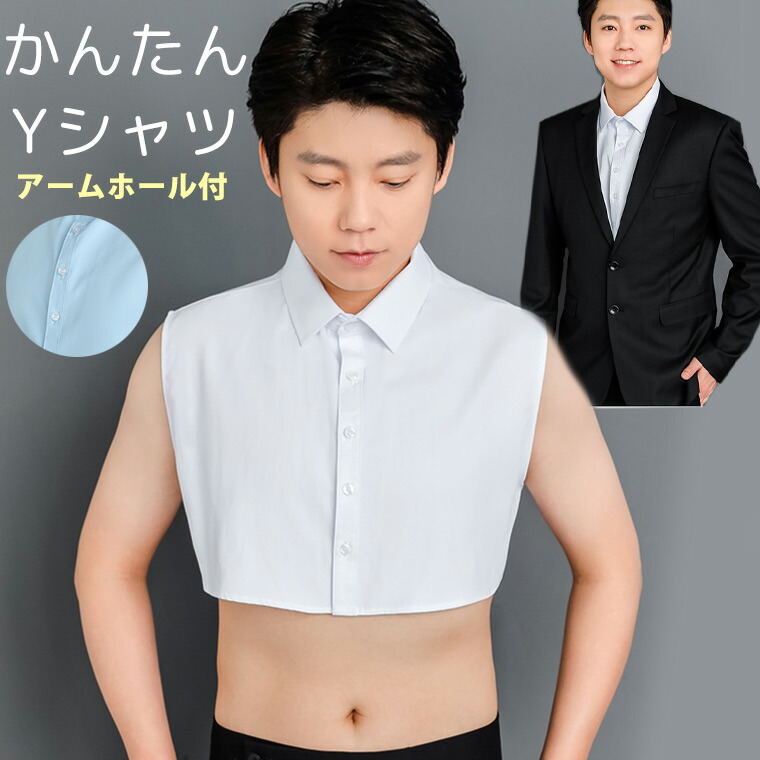アームホール付 リモートワークに最適 フェイクYシャツ メンズ 付け襟 フェイクシャツ つけ襟 Yシャツ レイヤード 重ね着 バストアップ 簡単
