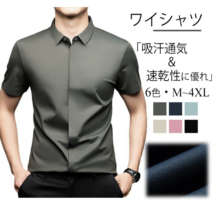 ワイシャツ 半袖 シャツ メンズ 接触冷感 アイスシルク ストレッチ ノーアイロン シワにならない Yシャツ ビジネス 冷感 ひんやり 涼しい 結婚式 お葬式 フォーマ リクルート