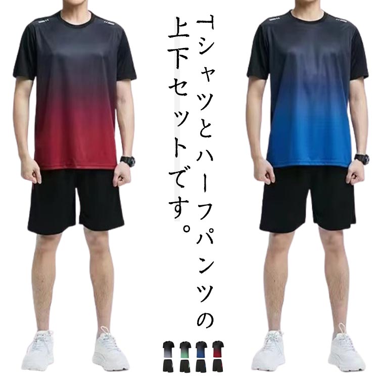 メンズ ハーフパンツ 半袖Tシャツ 短パン スポーツウェア グラデーション 通気 ランニングウェア 軽量 ジャージ 薄手 冷感 吸汗速乾 大きいサイズ 部屋着 夏服