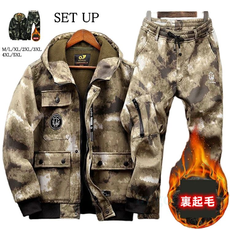 セットアップ 上下セット メンズ 迷彩服上下 裏起毛 防寒着