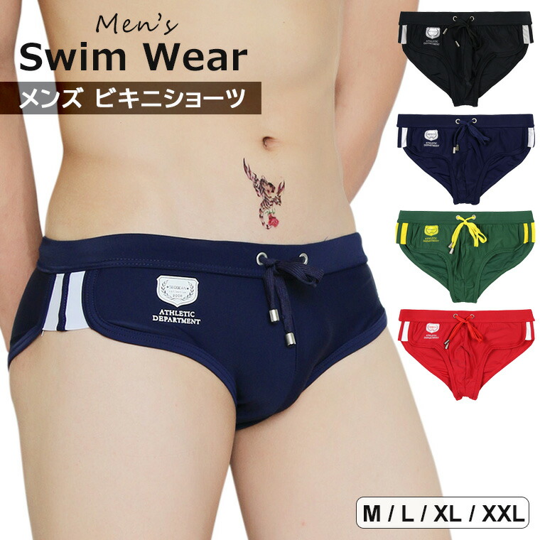 セクシーなローライズタイプのメンズ用ビキニショーツ 水着 メンズ ビキニショーツ ローライズ 海パン ビーチパンツ インナーショーツ スポーティー 全4色 海水パンツ