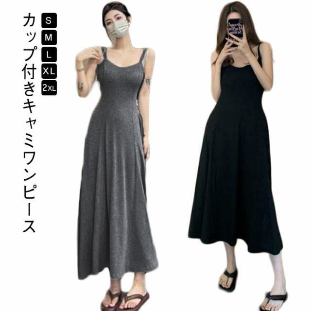 フレアワンピース キャミソールワンピース ロング カップ付き 黒 ロング丈 夏 きれいめ ワンピース ジャンパースカート イン マキシワンピース