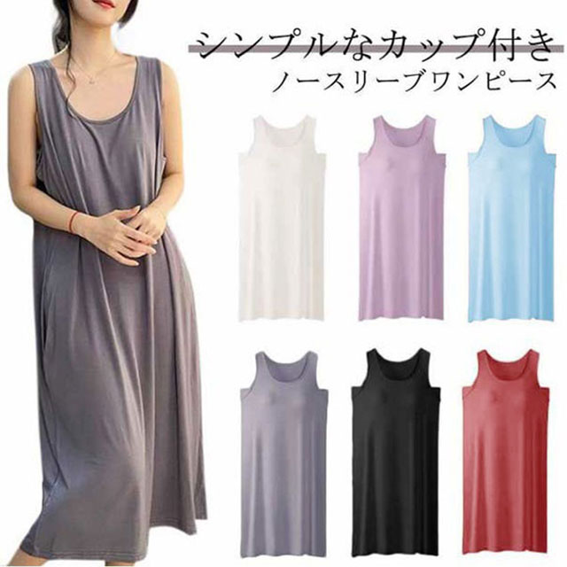 キャミソールワンピース インナー ワンピース ノースリーブ レイヤード 柔らかい ルームウェア 綿 夏 大きいサイズ 低身長 高身長 上品