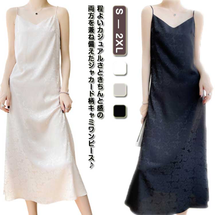シルク ワンピース ロング丈 ノースリーブ ジャカード レディース キャミソール キャミソールワンピ インナー 体型カバー ノースリーブワンピ ロング シルクサテン 重ね着 柔らか 上品 夏