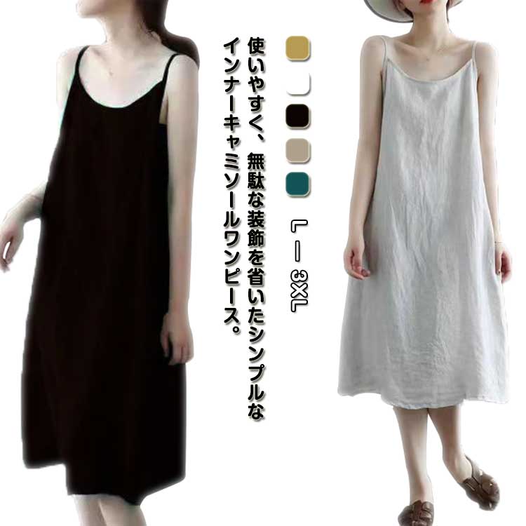 ペチコート レディース ロング 綿麻 夏 インナー キャミワンピース ワンピース 春 秋 キャミソールワンピース カジュアル キャミワンピ 透け防止 ナチュラル コットン ワンピ下