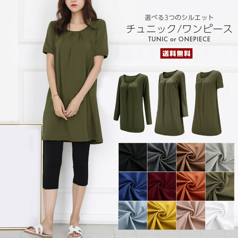 ワンピース 【レディースファッション トップス チュニック ミドル丈 長袖 半袖 薄手 通気性 Aライン カットソー ロンT カジュアル シンプル 合わせやすい カラー豊富 女性 婦人 サマーウェア