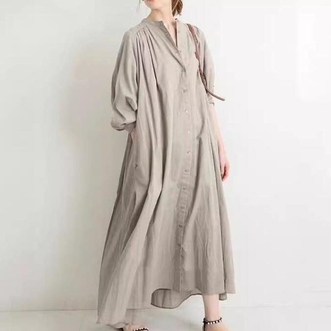 シャツワンピース ロングワンピースリネンワンピース ワンピース レディースファッション ナチュラル 7分袖 無地ワンピース 春ワンピ 大人可愛い 麻ワンピース
