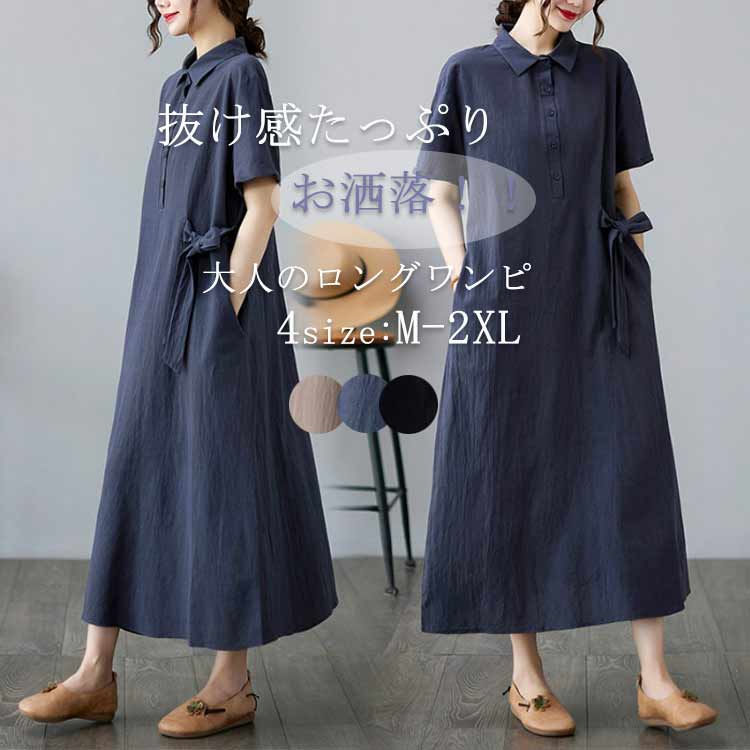 シャツワンピ ロング 半袖 夏 ロングワンピース レディース 大きいサイズ シャツワンピース ワンピース 大人かわいい キレイめ 夏