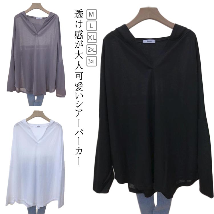 UVカットパーカー シアーパーカー 涼しい 透け感 薄手 プルオーバー 長袖 レディース おしゃれ 長袖パーカー 軽い シースルー 春 夏 日焼け対策 ゆったり 体型カバー オーバーサイ Vネック