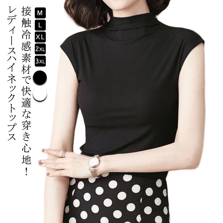 カットソー ノースリーブ レディース 接触冷感 ハイネック アンダー ハイネックtシャツ ノースリーブtシャツ インナー 肌着 大人 女性 きれいめ セクシー 大きいサイズ 薄手 秋 重ね着 レ 春夏