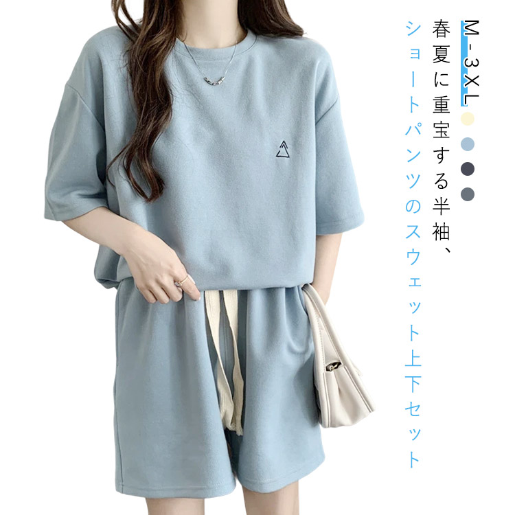 半袖tシャツ セットアップ レディース ジャージ ショートパンツ 短パン 夏 春 Tシャツ 上下セット カジュアルセットアップ 2点セット スウェット 半袖 楽ちん 可愛い ゆったり 半袖カットソー