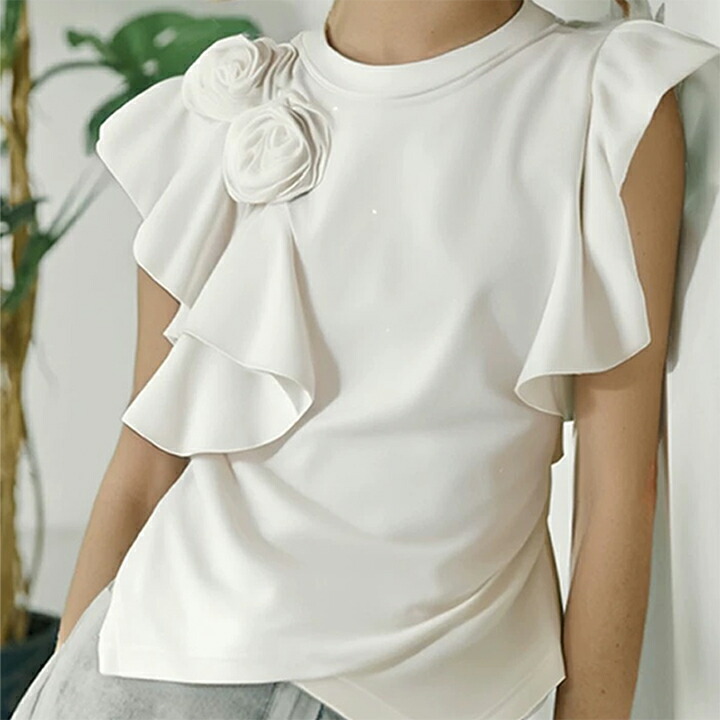 アシンメトリー フリル シャツ アシメ 半袖 カットソー 白 ホワイト