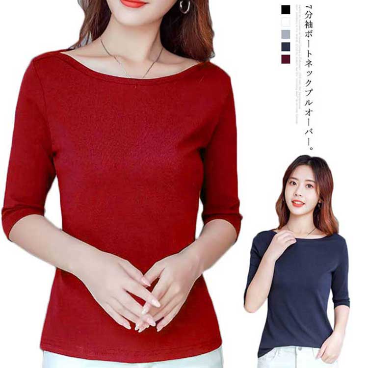 送料無料 シャツ レディース トップス 7分袖 カットソー シャツ 七分袖 シンプル 無地 ロン ボートネック 春 夏 秋