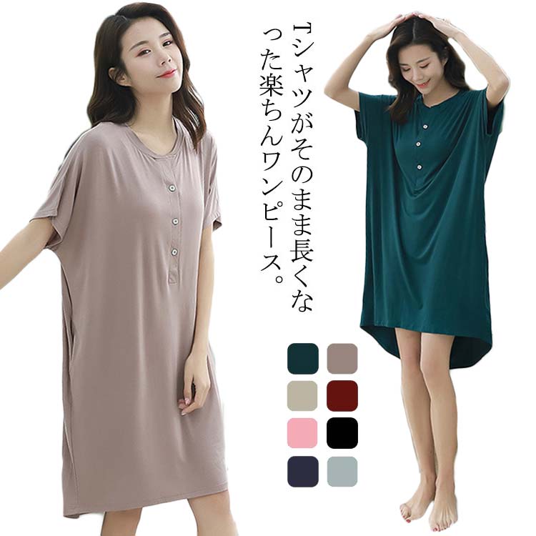 ロングシャツ 半袖 大きいサイズ ゆるシャツ カットソー リラックスウェア ルームウェア 部屋着 膝丈 カジュアル 薄手