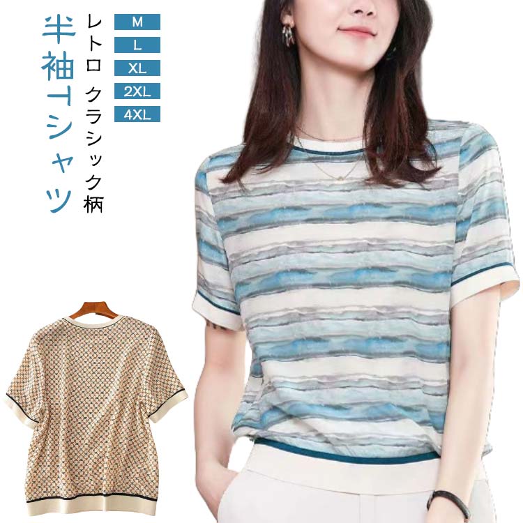 レディース きれいめ ブラウス トップス tシャツ シャツ オフィス レトロ 柄シャツ 春 夏 秋 オフィスカジュアル 大きいサイズ 30代 40代 ゆったり