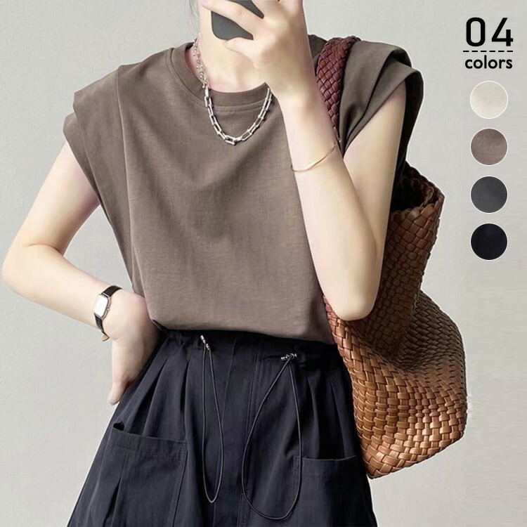 Tシャツ レディース 綿 コットン 肩タックトップスノースリーブ着痩せ 華奢見え 半袖 フレンチスリーブ 無地 カジュアル シンプル トレンド インナー トップス ノ カットソー