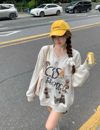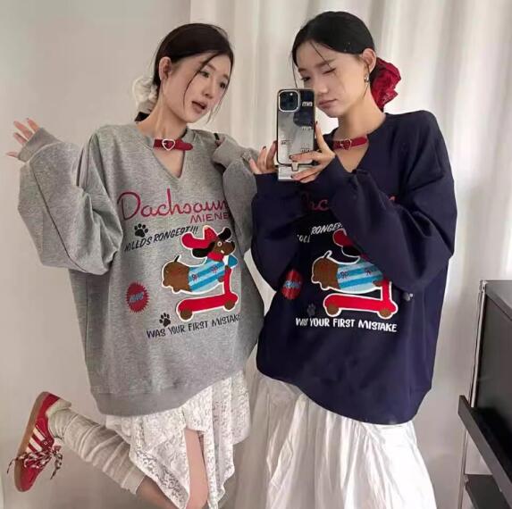 ユニフォーム風犬長袖トップスカットソートレーナーグレーブラック長めダンス衣装ヒップホップレディースガールズストリート韓国おしゃれ奇抜派手大人個性的かわいい