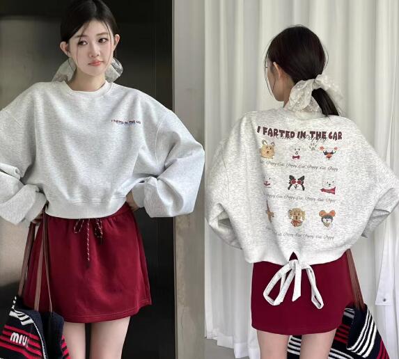 バックプリント長袖トップスカットソートレーナーグレーネイビーショート丈短い短めダンス衣装ヒップホップレディースガールズストリート韓国おしゃれ奇抜派手大人個性的かわいい