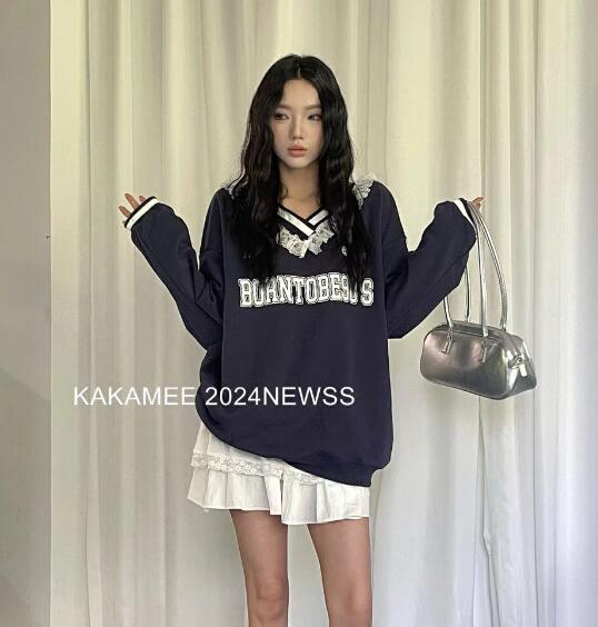 レースロゴ ナンバートップスカットソートレーナー長袖シンプルビッグ大きいサイズ長めゆったりグレーダンス衣装ヒップホップレディースガールズストリート韓国おしゃれ奇抜派手カジュアル