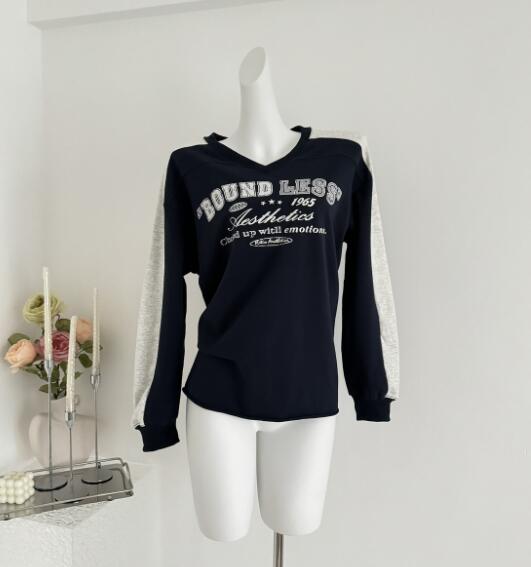 ロゴバイカラー 長袖トップスカットソートレーナーグレーネイビー長めダンス衣装ヒップホップレディースガールズストリート韓国おしゃれ奇抜派手大人個性的かわいい