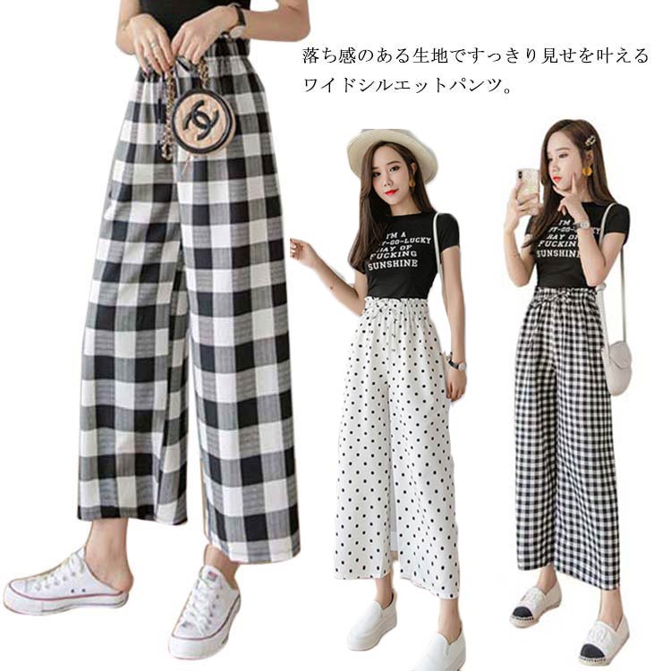 多彩な柄バリエ揃い ガウチョパンツ ワイドパンツ レディース クロップド丈 カジュアルパンツ 七分丈パンツ ワイドシルエット チェック柄 ドット柄 水玉柄 大きサイズ ナチュラル お洒落 可 ゆったり