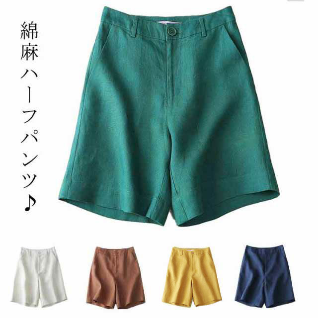 リネンパンツ ショート丈 綿麻 ハーフパンツ ショートパンツ ゆったり ハイウエスト すっきり